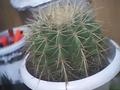 巨鹫玉(Ferocactus horridus),仙人拳(强刺球)属,球体大型,可大2Ocm,深绿色,枝上刺座 生有粗壮刺丛,每个刺丛申都生有勾环状硬刺,刺暗褐色,上有灰白色环斑。单花着生球顶,花 黄色。此种采用嫁接繁殖。
