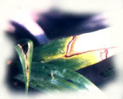 病原病原由数种真菌引起。据上海园林科研所分离培养,经常出现的有兰刺盘孢菌(ColletorichumorchidearumAllesch)和兰叶短刺盘孢菌(C.orchidearumf.cymbidiumAllesch)两种。寒兰、蕙兰上发生的炭疽病病原可能为兰叶短刺盘孢菌;四川春兰、建兰、婆兰、墨兰上发生的炭疽病病原多为兰刺盘孢菌。据北京报道,兰花疽病病原也有盘长孢属(Gloeosporium)真菌。兰科刺盘孢菌的分生孢子盘圆形,小而色黑,叶两面均有着生。刚毛黑褐,有分隔3-4个,直或稍弯,顶端尖削,大小为50-100*3-5微米。分生孢子圆柱形,大小为12-20*4-6微米,一端稍小,透明无色,单胞,具油球或颗粒状内含物。分生孢子梗粗短。病菌生长适温25℃。萌芽适温为25-30℃。