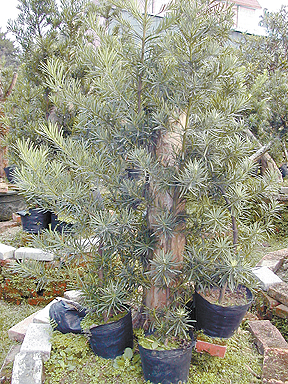 据梁老板介绍,嫁接罗汉松在陈村花卉世界已经兴起了三四年,由于这种技术简单且成本低,见效快,因此嫁接罗汉松在陈村花卉世界已经非常普遍。“虽然技术简单,一学就会,但嫁接的成活率目前还并不高。有的是因为接穗与老桩之间存在品种差异,缺乏亲和力;有的是因为接穗长势太弱,悬挂捆绑在树桩上之后出现脱水死亡;有的是因为嫁接技术不过硬或养护管理不到位等。往往在一棵树上嫁接10多个接条,但真正能成活下来的只有一半左右。”但梁老板表示,尽管这种嫁接方式的成活率不高,但也是目前能让移植罗汉松快速丰满起来的最有效方法。