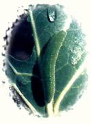 为害状:主要为害十字花科甘蓝、羽衣甘蓝、紫罗兰等,尤其偏嗜叶表光滑无毛的甘蓝和花椰菜类蔬菜。菜粉蝶以幼虫啃食菜叶进行为害,初孵幼虫在叶片背面啃食叶肉,残留表皮,呈小形斑。3龄以后幼虫取食量增加,将叶片吃成孔洞和缺刻。严重时只残留叶柄和叶脉。