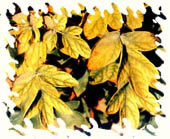 发生规律:碱性土壤中的铁不易被吸收,在刚展叶时叶片尚为绿色,当新梢速长期和展叶期,生长发育所需铁元素增加而土壤供应不足出现缺铁性黄叶病,新梢顶端叶片尤为显著,有时新梢尖端嫩叶全部黄。