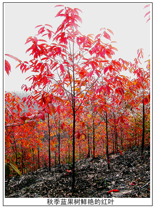 蓝果树主要用播种方法繁殖。9月至10月,当果由绿色略带紫色变为深蓝色至蓝黑色时应及时采收,过晚种子易散落。果实采回堆沤3 天至5天,当果皮软熟后装入筐内,置水中搓洗,淘去腐烂的外果皮和中果皮,在室内通风阴干,去杂后用沙湿藏。播种可冬播或春播,也可随采随播。播种前用清水浸种,采用宽幅条播,行距30厘米,每亩用种量7公斤至9公斤。筛土覆盖,以不见种子为度。播后盖草,翌年春季三四月间可出苗,发芽率约70%至80%。每亩产苗量1.2万株至1 .5万株,一年生苗高1.2米至1.5米。蓝果树的移栽宜在秋季落叶后或早春冬芽未萌动前的雨天或阴天进行。