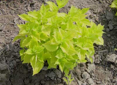 落叶灌木,株形紧凑,叶卵形或狭卵形,具浅锯齿,整个生长季节叶色金黄。