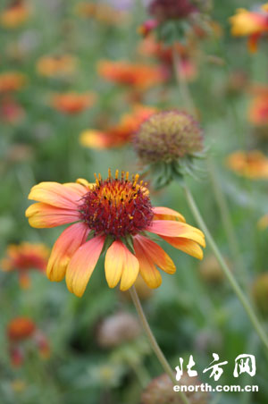 8月6日,北方网记者来到了天津园林绿化研究所的科普试验园内,眼前的色彩立刻丰富了起来,绿叶红花相互映衬,高树矮草错落有致。该所宿根中心研究人员高军介绍说,这个园里试种了从国内外引进的天人菊、桔梗、萱草、景天等13个科属的近百个花卉新品,现在大部分花卉都已盛开,而且这些新品种的花期都比较长,一般在3个月左右,最长的可达5个月,从5月份开始可以持续到9月底。