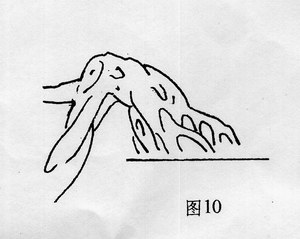 2、采取横出,虽可缓解上述矛盾,但从整体造型构架来看,线条缺乏变化,与主干曲度不统一,欠缺美观,同样不可为(图10)