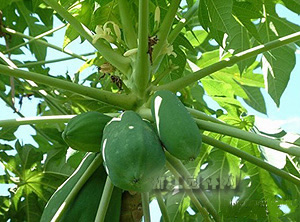 木瓜的移栽和翻盆宜在早春进行,应带有土坨,并将主根剪短,多留侧根。用中性至微酸性、疏松肥沃的沙质土壤栽种,并施以腐熟的饼肥末作基肥。成活后放在室外阳光充足处养护,生长期保持盆土湿润而不积水。4月初向叶面喷施一次0.2%的磷酸二氢钾溶液,以促使花蕾健壮,给以后的开花结果提供充足的营养。由于盆栽土壤较少,养分有限,座果不能太多,一般每盆留3至5个果实即可,其余的果实应及早摘除,以免消耗过多的营养,影响植株正常生长。每月施一次“矾肥水”,以防止土壤碱化,并使果大味香。养护中经常打头摘心,以保持株形都优美。冬季落叶后对植株进行一次修剪整形,剪除枯枝、弱枝以及其他影响造型的枝条,多留壮枝,使来年花繁果丰。木瓜耐寒,冬季可留在室外避风向阳处越冬,最好能将花盆埋入地下,也可置于0℃以上的室内,温度过高植株会提前发芽,反而对第二年的生长不利,故最高温度不要超过10℃,以使植株充分休眠。每1至2年的早春翻盆一次。