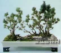 由于历史原因,台湾盆景同日本盆栽的关系格外密切,日本一年一度的盆栽展览,都要邀请台湾盆景参加,以致台湾盆景的主要造型样式都模仿、脱胎于日本盆栽的造攀件至"*** ?型样式,但又力求保持中国盆景(特别是岭南派)的传统风格。源于日本的舍利干、神技造型,在台湾盆景中占有相当突出的地位,并从以松、柏为主发展扩大到其他树种,白骨化的舍利干、神木同翠绿的枝叶相映成趣,很有特色。受日本盆栽造型影响较大的“造型木”式,端庄、稳重,甚至可以说有一点“霸气”。矮壮型可看作是参天大树的矮化,结构严谨,极具功力,在台湾盆景中颇有一定的代表性。其他如丛林式、悬岩式等等,则更接近于岭南风格,顺其自然,因势利导,不拘一格,赋于新意。