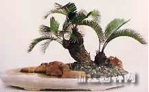 胶接山石前需洗净盆面,可以用水泥调合107胶,再调进颜色,使之接近山石颜色。胶合必须紧密,既要使山石与盆面结合得好,又要使山石之间结合得好。不可漏水,也不要有多余的水泥外露,可用油画笔蘸水洗刷沾在山石外面的水泥,漏水会对植物生长不利。胶合的水泥干透后,即可栽种树木。先在旱地部分铺一层薄土,然后剔去根部宿土并适当修整,按布局要求将树木栽在适合的位置上,用竹签使土与根贴紧,不要将土压得太紧。
