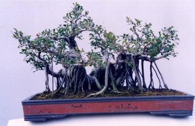 前不久,一位港商慕名寻上门来,愿出重金3000元购买,而蒋家却将它视为"传家宝"舍不得卖。漳州人善于制作榕树盆景。被誉为榕树盆景状元的郑金虎,采用泥土诱发栽培技术等,能使"年轻"的榕树头变得古朴多姿,并长出束束美须。在闽南方言中,"榕"与"情"同音,因此,海外侨胞喜欢把榕树盆景带往异国他乡。