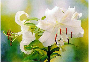 百合开白色的花比较多,也有红、黄、绿、粉等色,有的花被上又有锈斑。百合属植物,自然分布于北半球欧、亚、美、三洲,共80种,我国产39种,全国