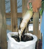 ※需选用颗粒均匀的土壤,若土中有石头或肥料凝块,会使得白萝卜畸形或分岔。