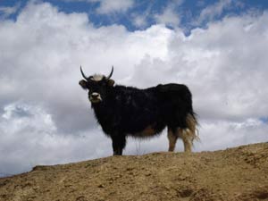牦牛藏语称“呀”,是地球上生活在海拔最高地区的哺乳动物,眼睛小,腹、肩、股、肋部都有长可及地的毛,即使睡卧冰天雪地也不觉寒冷,而其坚实的蹄质,则可攀走于高原雪地。牦牛虽然行动迟缓,但能负重、耐长途跋涉,尤其能适应高原爬坡与冰天雪地,是藏民最主要的运输工具,享有“高原之舟”的美誉。牦牛的粪晒干后可作燃料,肉可以食用,皮可以做鞋,毛织成氆氇后可制成藏袍、帐幕或毯子;牦牛奶可提炼成酥油,并制成酥油茶。