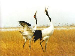 丹顶鹤又称仙鹤,是十分珍贵的名禽,属于鸟纲鹤形 目鹤科。在全球15种鹤中,丹顶鹤是世界第二大稀有鹤种,主要分布于中国、西伯利亚、朝鲜和日本。它们春天北上在中俄边界繁殖,秋后结队南迁在中国沿海及长江流域越冬,是一种大型候鸟,丹顶鹤鸣声嘹亮,不鸣则已,一鸣惊人,声及数里之外,诗经中有“鹤鸣九皋,声闻于天”之说。这是因为丹顶鹤气管很长并盘成多个圈,穿入胸骨,而且愈老愈长,故老鹤之鸣愈发高亢,真是老当益壮、鹤发童颜。目前,丹顶鹤被国际自然保护联盟列为濒危级物种,被《濒危物种国际贸易公约》列入附录二物种,在中国属国家一级保护动物。