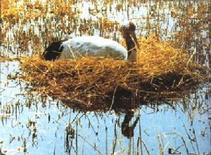 丹顶鹤属于单配制鸟,若无特殊情况可维持一生。每年的繁殖期从3月开始,持续6个月,到9月结束。它们在浅水处或有水湿地上营巢,巢材多是芦苇等禾本科植物。丹顶鹤每年产一窝卵,产卵一般2-4枚。孵卵由雌雄鸟轮流进行,孵化期31-32天。雏鸟属早成雏。繁殖期求偶伴随舞蹈、鸣叫,营巢于具一定水深的卤芦苇丛、草丛中,每产1- 2卵,孵化期30--33天,早成鸟,2岁性成熟,寿命可达50-60年。待幼鸟学会飞行,入秋后,丹顶鹤从东北繁殖地迁飞南方越冬。我国在丹顶鹤等鹤类的繁殖区和越冬区建立了扎龙、向海、盐城等一批自然保护区。在江苏省盐城自然保护区,越冬的丹顶鹤最多一年达600多只,成为世界上现知数量最多的越冬栖息地。