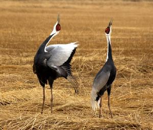俩白枕鹤喜结连理特殊“婚礼”:俩白枕鹤喜结连理