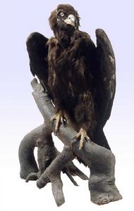 灰秃鷲,有时也称黑秃鷲(Aegypiusmonachus),是最大的鸟之一。长约1公尺(3.3呎),重12.5公斤(27.5英磅),翼展约2.7公尺(8.9呎)。全黑色,翼宽而短,尾略呈楔状,栖息於欧洲南部、小亚细亚、亚洲的中部大草原和最高山,在高树上营巢。这些区域也栖息著一种稍小的髯秃鷲,或称髯鷲(Gypaetusbarbatus)。