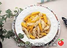 (4)将葱与姜放入锅中爆香,鸡肉再回锅,以调味料调味,再将芒果加入拌炒一下即可起锅。