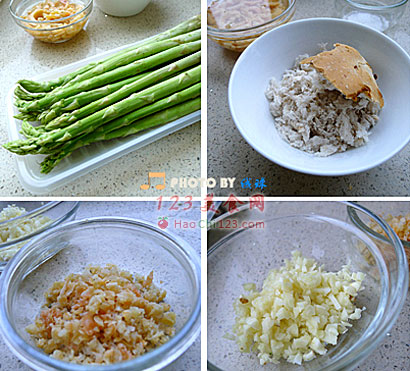去骨鸡胸肉1副、芒果1颗、青葱1支、姜末少许、盐1/4小匙、蛋汁1/2个、太****1/2小匙、冷开水1小匙。