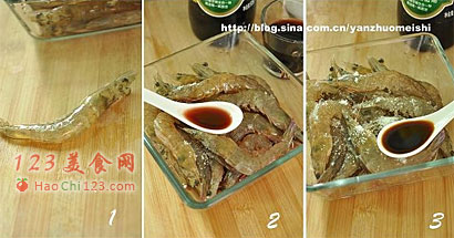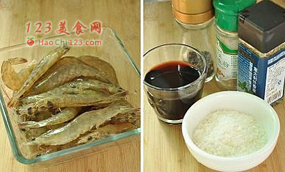 1、处理虾,剪去虾枪,虾须,从背部划开,取出虾线。撒入少许盐,白胡椒粉,倒入2勺红酒、1勺生抽腌20分钟。