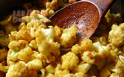 4、炒花菜,加上酱料,能让食材充分惹味。大家很喜欢的一道家常菜。