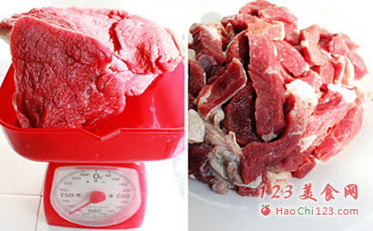 5、高压锅里稍加一点点水,把腌好的牛肉加进去压熟,大概嗤嗤冒气十分钟左右。注意一定少加一点水,因为腌好的牛肉在炖的过程中本身就会出水。