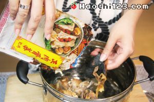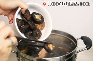 4、干香菇的鲜味强度是普通味精的几十倍,将干香菇用清水泡发后,要用力挤干水分才下锅熬煮,可使它能吸入浓郁的汤汁,味道更加鲜美。