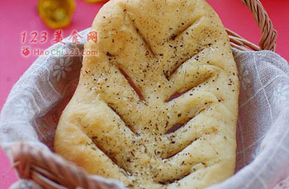 5、叶形烤饼(Fougasse)曾经是法国南部普罗旺斯圣诞节的传统点心之一,这种薄薄的烤饼非常有特色,通常被切割成树叶状,或者是面具的造型。而且面团中可以根据个人喜好添加洋葱末、培根丁或者黑胡椒。烤饼的表面通常撒有各式干燥香草提香,无论口感还是风味,都与意大利的佛卡恰有异曲同工之妙。