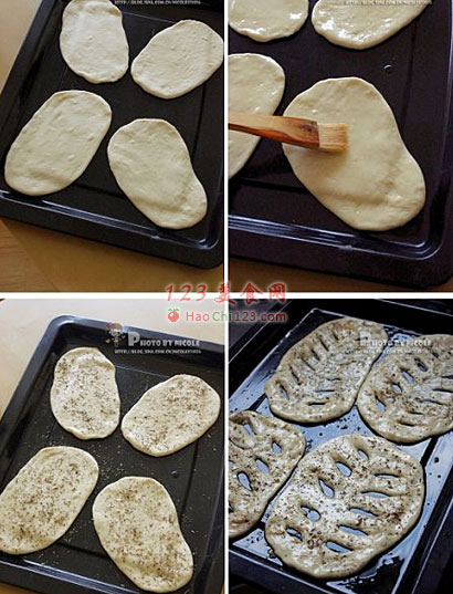 6、叶形烤饼实际属于一种面包,由于添加了橄榄油,烤饼的外观发黄,口感酥脆。与奶油相比,橄榄油的脂肪含量更低,更加健康,加上具有天然保健和美容功效,是这款点心的最佳用油。当然,如果没有橄榄油,也可以使用无味的植物油代替。