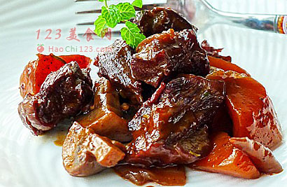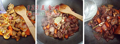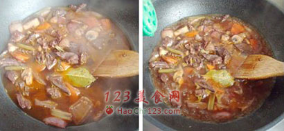 11、中途多观察,水如果没有了再加入开水,一直炖到汤汁收浓,牛肉软烂就好。