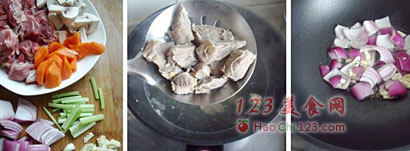 2、牛腩绰水的时候一定要将血污煮出来,不然味道会打折扣。