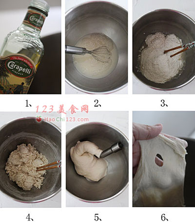 5、低速将材料揉匀,换3档打至面团光滑,到扩展阶段。