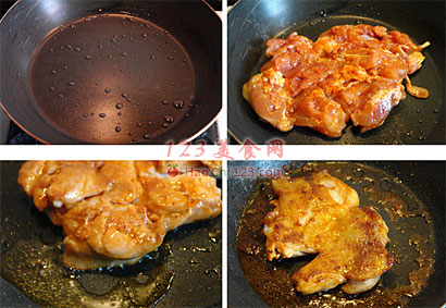 2、煎锅烧热,新手淋数滴色拉油(也可以不滴)。将鸡排鸡皮部分朝下放入,将鸡皮内的油脂逼出来,然后反面,继续煎熟即可。