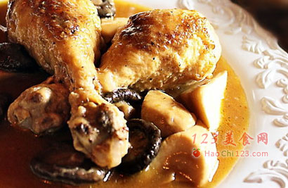 3、这道烩鸡,通常采用整鸡烹饪。红酒呢,很多菜谱推荐用PinotNoir,毕竟是Burgundy的特产。其实智利的PinotNoir也很不错,有条件的话加些白兰地,味道会更浓,未必是法国的,南非的白兰地就很好。
