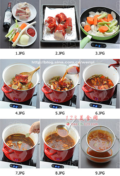 1、牛骨上抹番茄膏的目的是为了让牛骨更快的烤上色,这样最后作出的酱汁颜色才会深。
