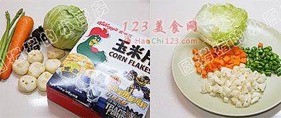 4、玉米脆片要在吃的时侯再洒,过早混入会失去酥脆度。