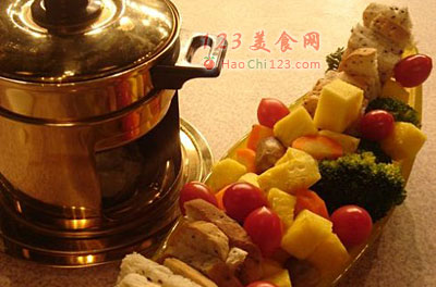 2、对法国人来说,最简单、最传统也是最完美的组合就是奶酪搭配面包和红葡萄酒。如果有时间,您也可以在家里动手做一个奶酪火锅,体会来自法国乡村的乐趣。奶酪火锅和中国火锅很相似,只不过锅底是溶化了的奶酪,“涮”的菜点是面包、水果、蔬菜。不过吃的时候可要当心,按法国人的做法,谁要是不慎将食物掉进锅里,男士要罚提供白酒一瓶,女士则要献上香吻。