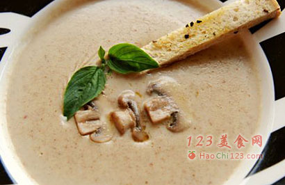 9、如果喜欢不带整片蘑菇口感的蘑菇汤,可以将所有材料用料理机打碎,再熬到浓稠、调味。