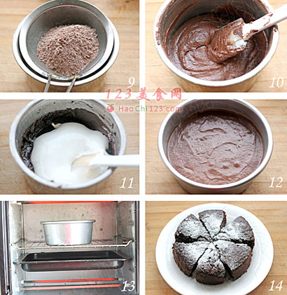4、象这道古典巧克力蛋糕就是口感非常扎实的一款欧式蛋糕,一定要试着感受一下它真正的品味精髓。它看似与戚风蛋糕的制作方法雷同,都需要将蛋白与蛋黄分开打发,但吃起来的口感却天差地别。一旦你开始亲手制作,就能体会到各式蛋糕的奥妙之处。当黑、白两色食材混合的刹那,撞击出的就是浓情巧克力与纯情蛋白霜的美味交融。