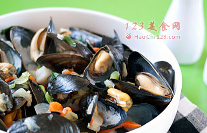 6、全部铺完后盖上盖,大火烧3分钟,然后不开盖把锅子晃几下,让里面的汤汁包裹每个mussels。再大火烧1分钟,关火后焖2分钟。趁先舀底下的出来吃,上面的又浸在汤汁中,第二次盛出来又是鲜美无比。趁热赶紧吃啊,凉了就影响口味啦!