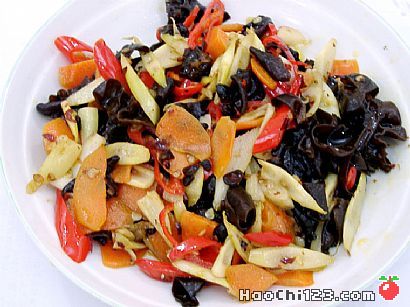 笋、木耳、红椒、胡萝卜。