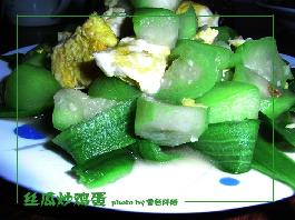 丝瓜,鸡蛋2-3颗,油,盐,料酒,葱花