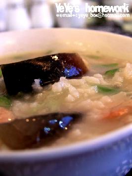 家中有皮蛋数枚,打开后发现其表面的松花纹甚是喜人。想到家父嗜皮蛋,但更需要降脂降压,于是这碗皮蛋香芹粥就诞生了。 皮蛋的典故:相传明代泰昌年间,江苏吴江县一家小茶馆,店主会做生意,所以买卖兴隆。由于人手少,店主在应酬客人时,随手将泡过的茶叶倒在炉灰中,说来也巧,店主还养了几只鸭子,爱在炉灰堆中下蛋,主人拾蛋时,难免有遗漏。一次,店主人在清除炉灰茶叶渣时,发现了不少鸭蛋,他以为不能吃了。谁知剥开一看,里面黝黑光亮,上面还有白色的花纹,闻一闻,一种特殊香味扑鼻而来;尝一尝,鲜滑爽口。这就是最初的皮蛋。后来,经过人们不断摸索改进,皮蛋的制作工艺日臻完善。