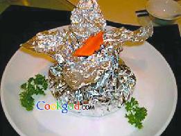 油发蹄筋200克,火腿、冬笋、香菇各20克,咸蛋黄2个,正方形锡纸1张。调料鸡精10克,高汤100克,味精5克,香菜末10克,姜末10克,生粉20克,盐260克,色拉油10克。