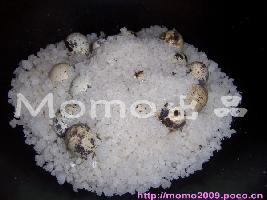 3.均匀的将鹌鹑蛋放在粗盐上。