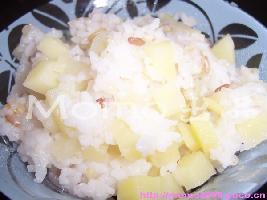 2.将土豆粒、杂粮放入电饭煲中,加入适量清水。