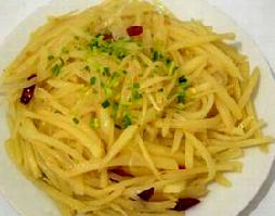 主料:土豆(黄皮)250克, 辅料:香菜50克, 调料:芝麻5克,白皮大蒜5克,味精2克,盐3克,辣椒油5克