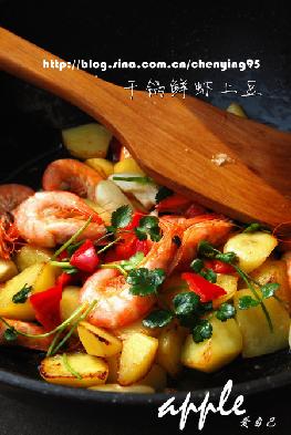 鲜虾,土豆,大蒜瓣,红椒,香菜