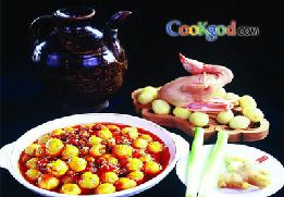 1、选用成都平原本地直径18毫米左右均匀的小土豆,冷水下锅,大火煮熟(以用筷子轻戳即透为宜),去皮备用;鹧鸪去毛、去内脏,洗净备用。