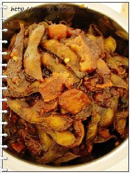 4.最后直到汤汁收干为止,大概要煮1个小时左右,中途不要经常搅拌,以免毛豆脱壳~