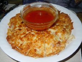土豆一个,面粉3勺,鸡蛋一个,洋葱粒少许,蒜蓉辣椒酱一勺,胡椒分少许,番茄酱4勺(最近我发现一个牌子的番茄酱不错啊,味道和kfc的有得拼,那个牌子叫"Del monte 地扪茄汁"5块多一瓶,便宜味道也好!)